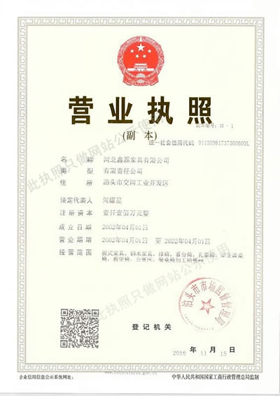 河北鑫磊家具有限公司(教學設備生產廠)位于中國鑄造之鄉——河北省泊頭市,是生產教學設備的綜合企業,被列為教委定點生產廠家。公司主要生產上下床、中小學課桌椅、電腦桌椅、軟排椅、階梯排椅、辦公椅及課桌椅配件等教學設備家具。 公司為股份制企業,歷經十多年的艱苦奮斗,具有雄厚的人力資源。